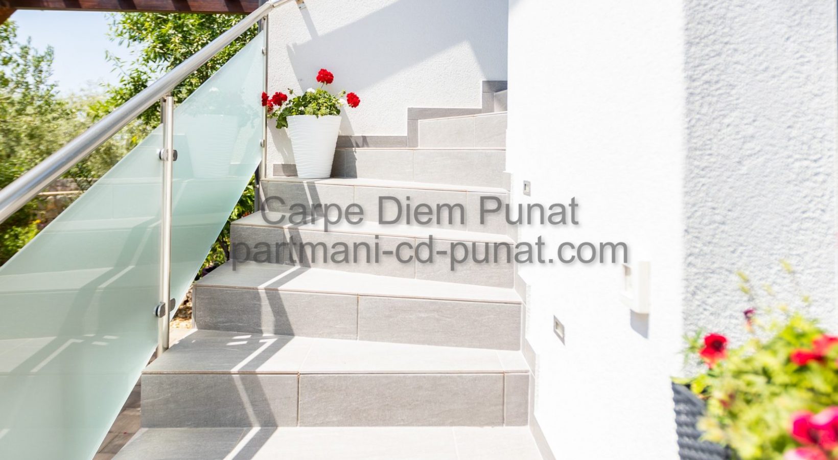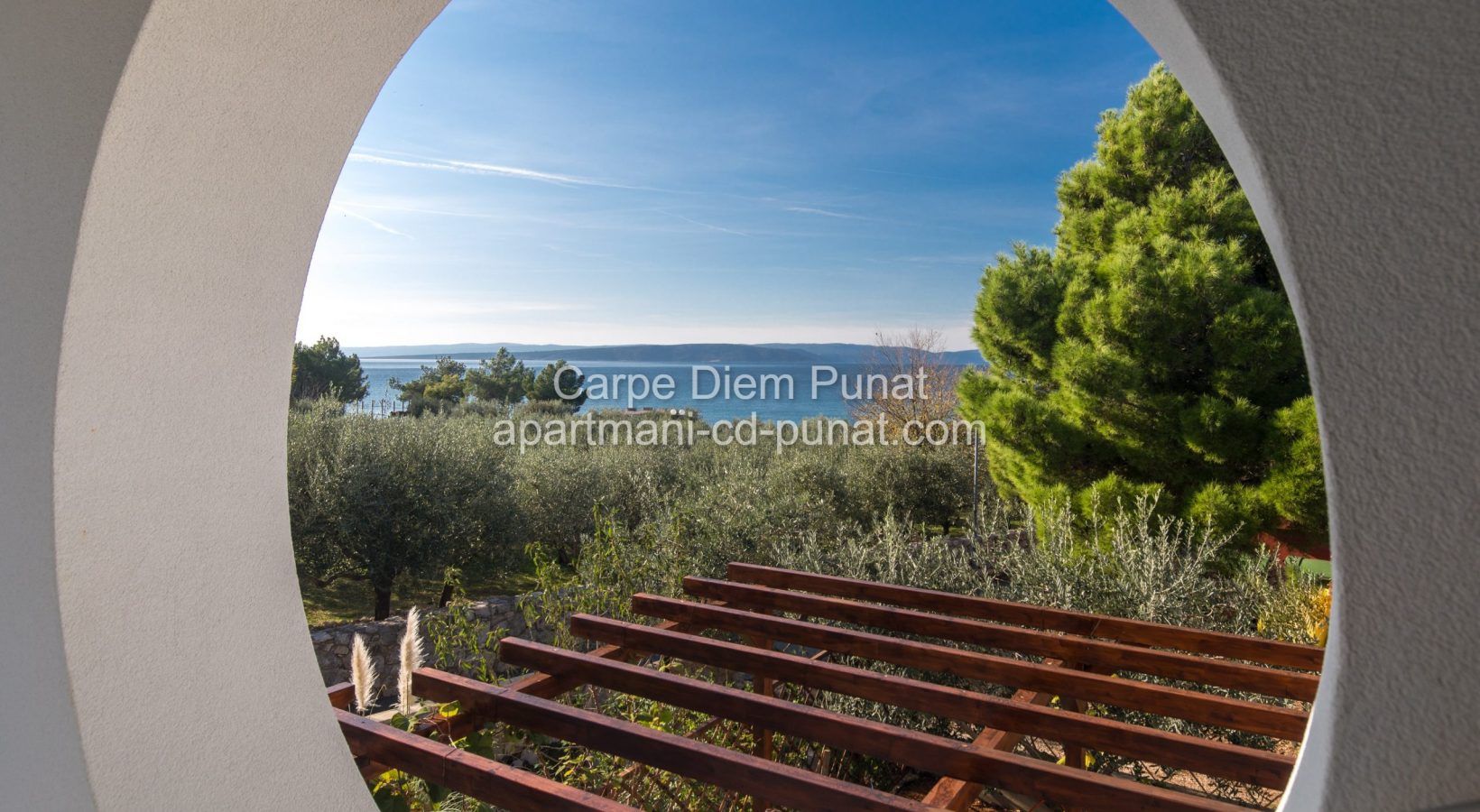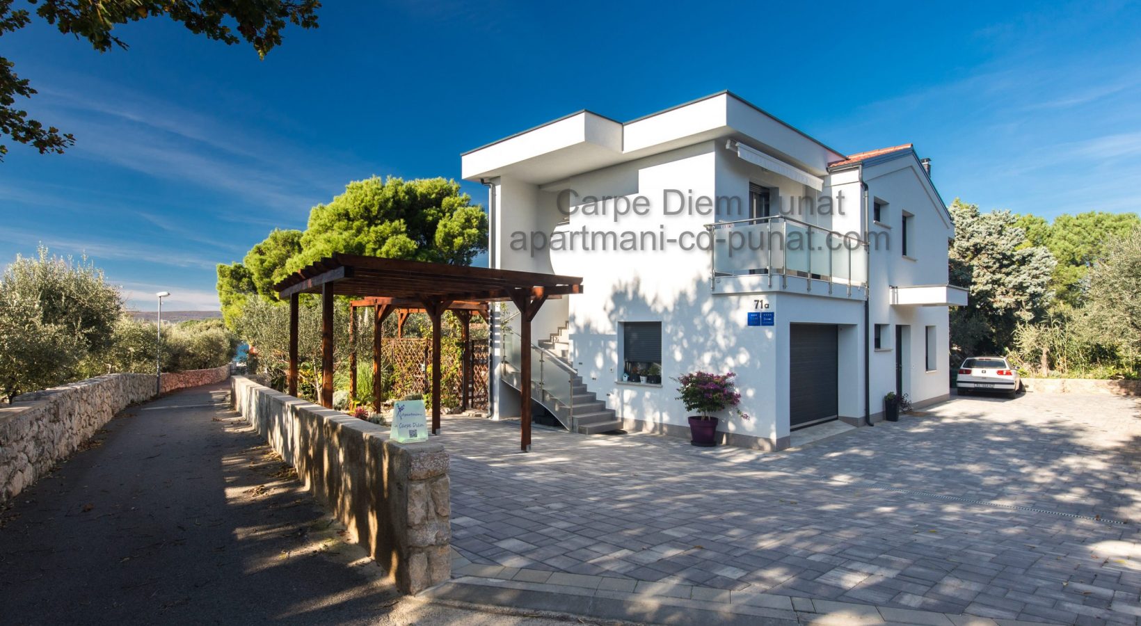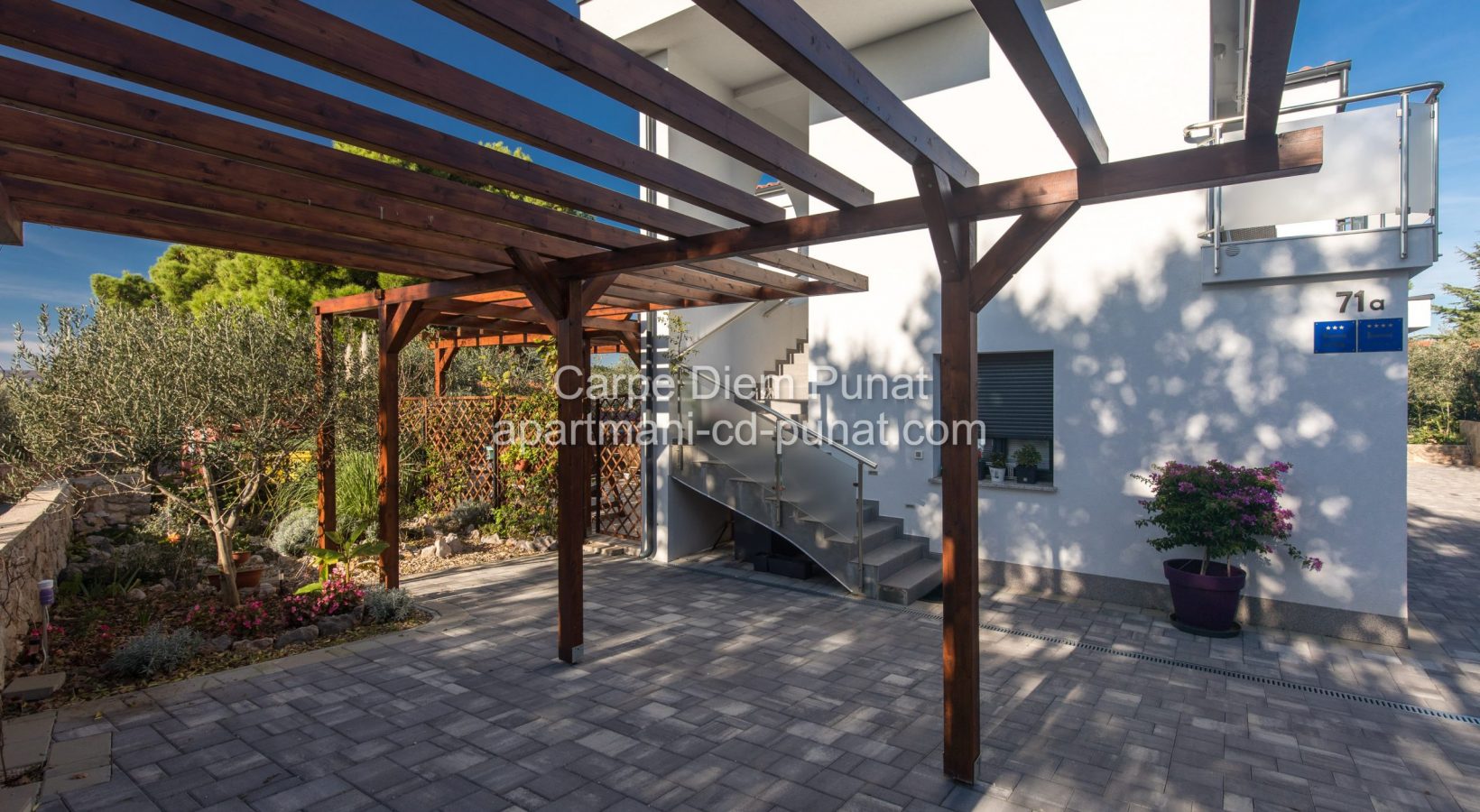 Carpe Diem Punat smješteni su na prvoj etaži nove obiteljske kuće .Kuća je locirana cca. 1km od centra Punta a na samo 50m udaljenosti jedne od najljepših plaža na otoku Krku ( plaža Buka-Punat). Plaža nosi Plavu zastavu za čistoću i uređenost te nudi mnogo sadržaja – od restorana i kafića , aqvagana, trampolin na moru, iznajmljivanja SUP-ova, kajaka …do odbojke na pijesku i drugih sportskih aktivnosti. Zbog sitnog šljunka izuzetno je ugodna i pogodna za djecu.